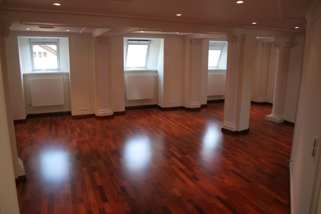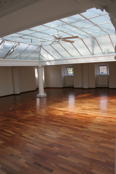Das Glasdach wird mit einer wärmeisolierenden Doppelverglasung und thermisch isolierten Profilen auf die aus dem Jahre 1906 erstellten Stahlkonstruktion aufgesetzt. Gleichzeitig werden die Seitenwände, die zur Loftwohnung im 5. Stock anschliessen, mit mehrschichtiger, hocheffizienter Wärmedämmung isoliert.