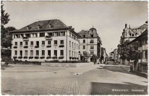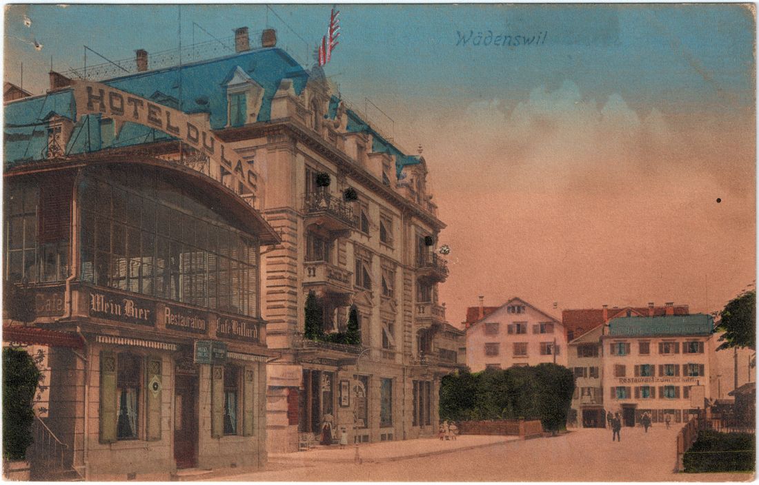 Das damahls direkt daneben befindliche Hotel du Lac ist heute durch einen von der Seestrasse bis zur Bahnhofstrasse reichenden Baukörper weiter Richtung Richterswil versetzt.